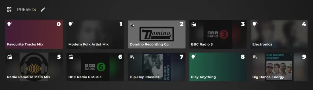 Why are the presets numbered 0-9? Because with the new STREAM series that will support control with IR remotes, you can now simply use that remote to turn the Stream on, then press a numbered button to begin playing music that you assigned to that number.