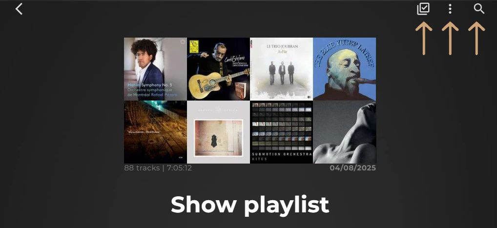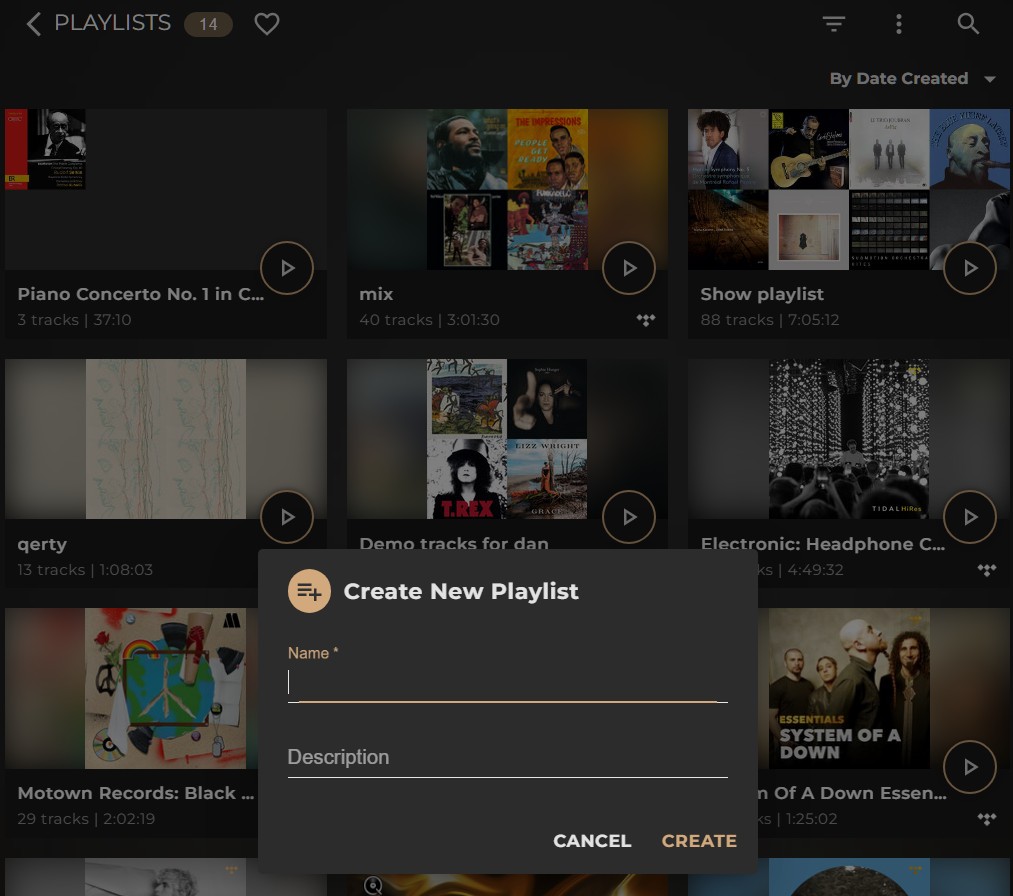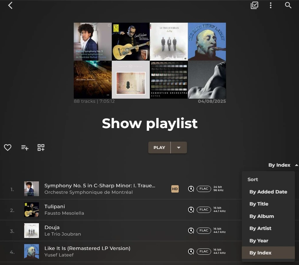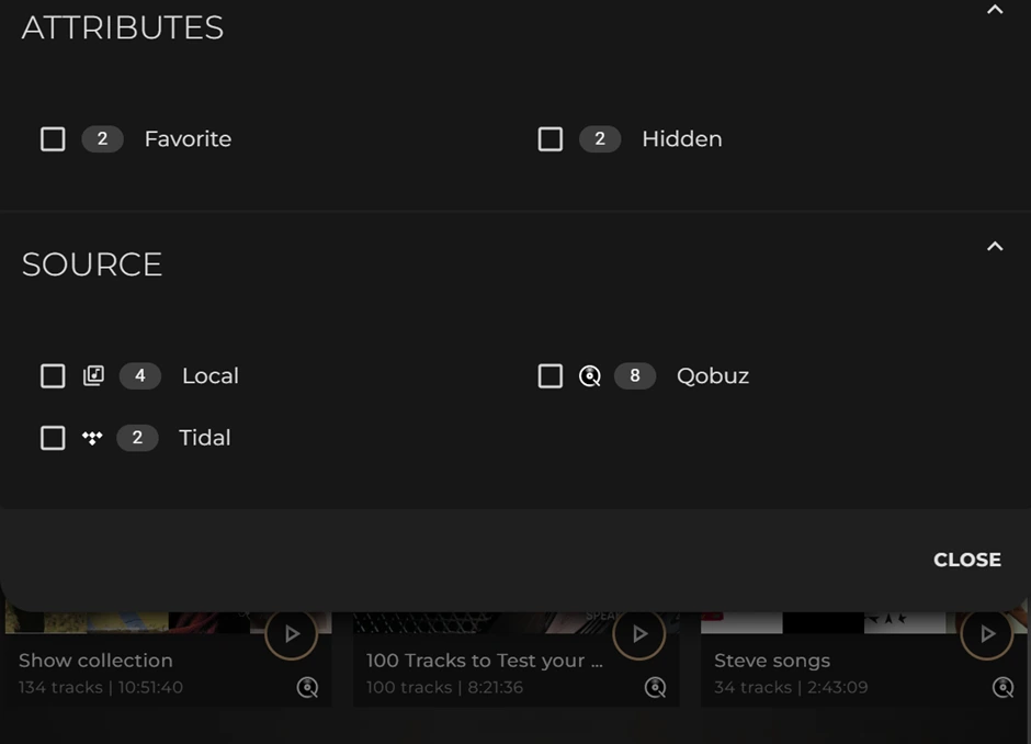 The filtering icon that will be familiar from the top of the Albums and Artists sections will similarly now be found in the Playlist section as seen in the image above. This will allow you to filter the results of your playlists defined on whether they are Local, Tidal, or Qobuz playlists, as well as playlists you’ve marked as Favourites or as Hidden.