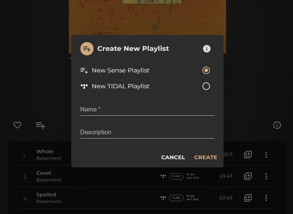 When you create a new playlist using a track from a supported Streaming service, currently this is TIDAL & Qobuz, you’ll have the option to make a Sense Playlist or a TIDAL/Qobuz Playlist depending on the source of the track.